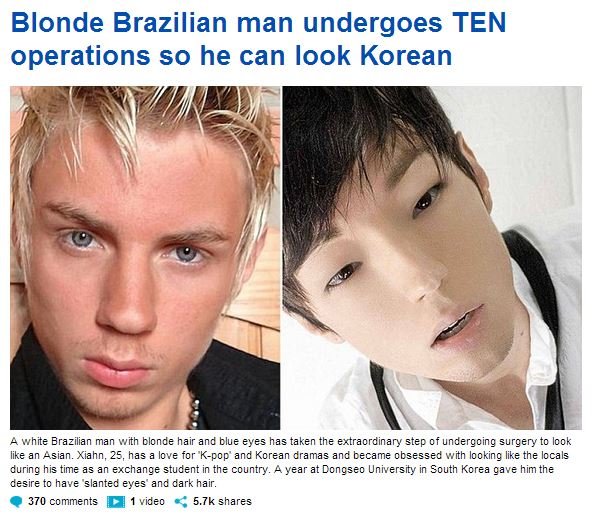 1名無し2017/10/21(Sat) 00:42:39ID:QxMzE5NjQ(1/1)NG報告ブロンドの髪と青い目を持つ白いブラジル人男性は、韓国人に見えるように手術を受けるという驚くべきステップを踏み出しました。>>5>>7>>802名無し2017/10/21(Sat) 08:19:53ID:E2MjU0NzY(1/1)NG報告→がイメージ通りの韓国人で大草原。不気味の谷を感じさせる生き物ってのも凄いな。03名無し2017/10/21(Sat) 08:51:52ID:c2NTY2MTE(1/1)NG報告なんで?よりによって韓国顔KPOPの、整形ガキタレに騙されたw04名無し2017/10/21(Sat) 08:56:59ID:Q0MjY1Mzc(1/1)NG報告マネキン顔…ビニール顔(笑)レプリカント顔05名無し2017/10/21(Sat) 18:05:42ID:UwNTIzNDg(1/2)NG報告>>1こりゃ~古い記事を抜いてきたね~>>606名無し2017/10/21(Sat) 18:06:43ID:UwNTIzNDg(2/2)NG報告>>5再度でも韓国顔がどんなものなのかが解るね細目吊り上りWWWW07YUKI - SPRITE -2017/10/21(Sat) 22:24:18ID:A4MTM2MTM(1/1)NG報告>>1 홍채 색깔은 어떻게 한 것인가? 망쳤다. 한국에서도 보기 드문 못생긴 얼굴이다.08GHQ2017/10/21(Sat) 22:26:47ID:UwNzcyMjk(1/1)NG報告>>1외모의 이야기는 서쪽으로 옮겨라.외모는 논평의 대상이 아니다.0