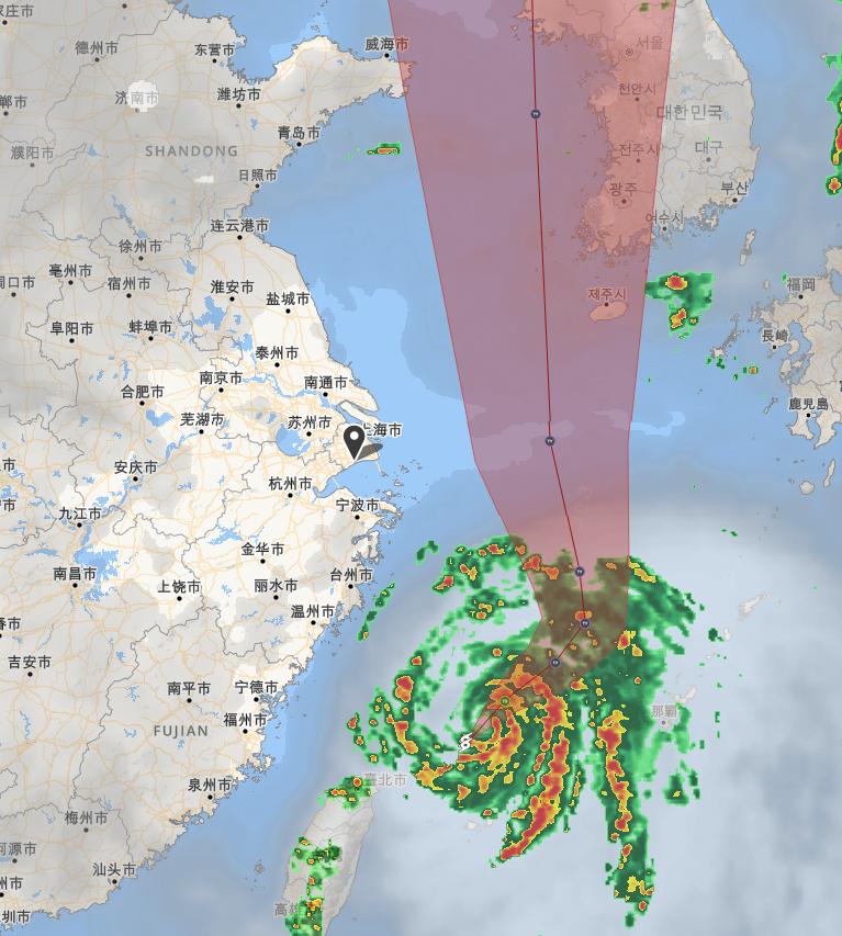韓国の気象庁はちゃんと台風予報しているのか、このままだと強い台風に成り最大瞬間風速60m/sで済州島付近通過、ソウル・平壌直撃コースだぞ。