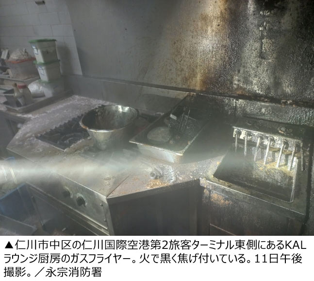仁川永宗消防署によると、火元は空港第2旅客ターミナル東側のKAL(大韓航空)ラウンジにある厨房のガスフライヤー近くだった。消防署は火災の通報を受けてから18分後の午後7時ごろに火を消し止めた。