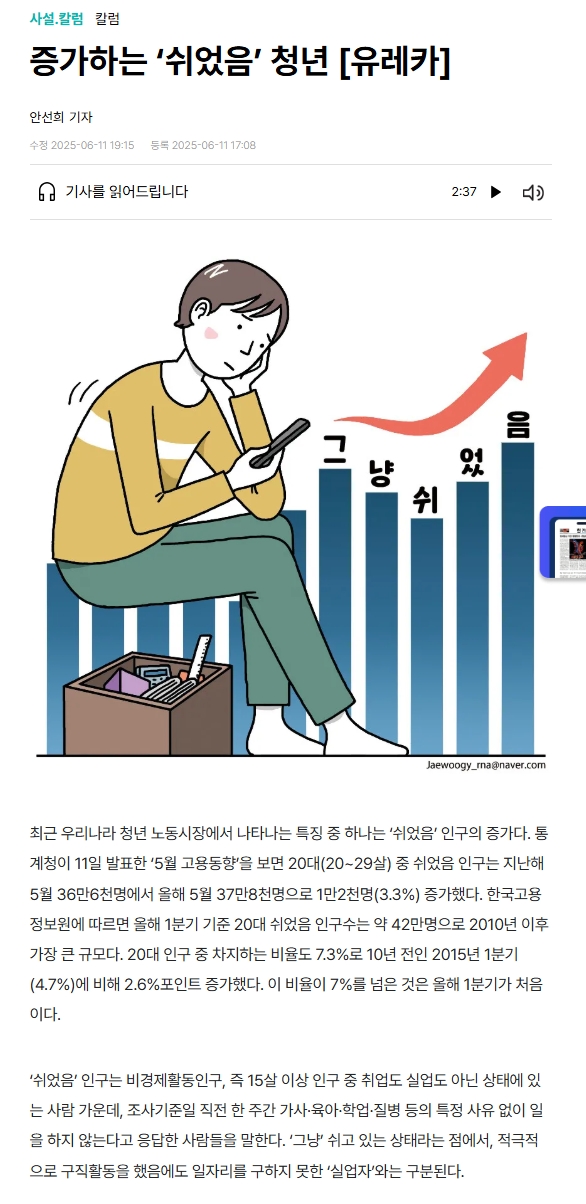 청년고용 악화일로…30대 ‘쉬었음’ 33만명, 10월기준 역대 최대.