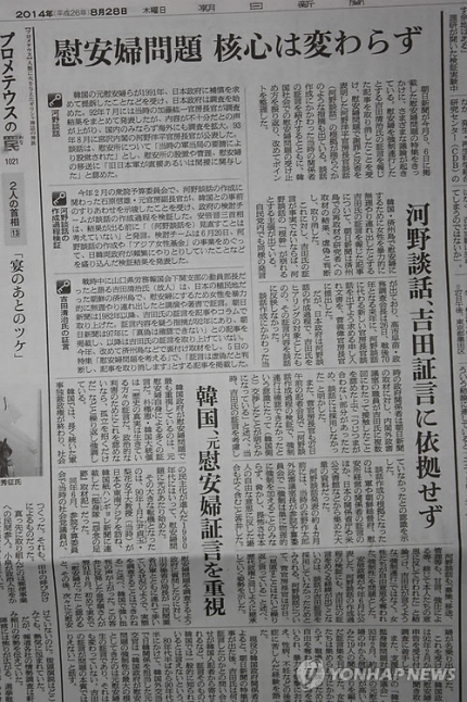 26일 이 신문에 따르면 최고재판소(대법원)는 이 신문의 위안부 보도로 '알 권리가 침해됐다'며 지바(千葉)현과 야마나시(山梨)현에 사는 28명이 1인당 1만엔의 손해배상을 요구한 소송에 대해 지난 25일 원고측의 패소를 확정했다.