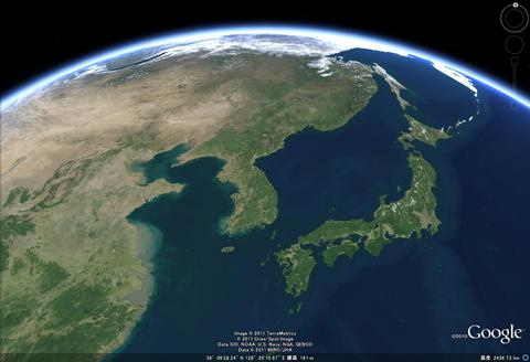 東アジアの衛星写真