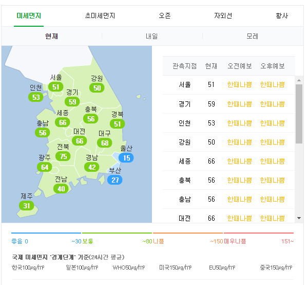 右側の“東アジア”をクリックすれば韓国の天気も見れるぞ>>1