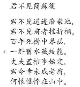 丈夫蓋棺事始定.君不見前者摧折桐 百年死樹中琴瑟
