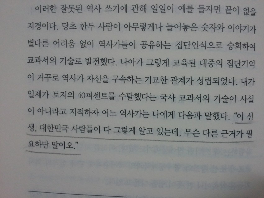 「민족적 감정을 만족시키는 스토리가 우선 있고, 거기에 적당한 자료를 붙여 올 뿐(만큼)이므로,
