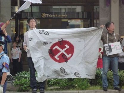 日本で大勢の嫌韓右翼が韓国の国旗を引き裂く画像が有ったら教えてくれ。