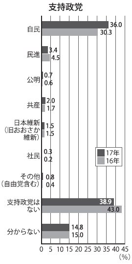 2017年3月に実施された東大新聞のアンケート。「あなたの支持政党はどこ?」>>41
