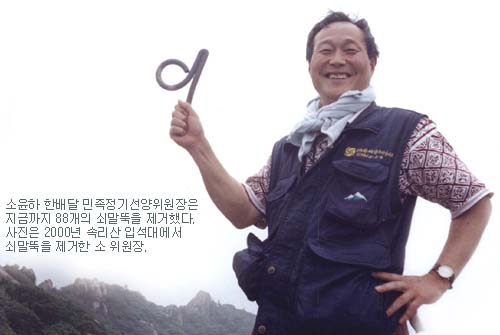 그동안 전국 명산에 박혀 있다는 쇠 말뚝 제거 사업은 민간 차원에서 진행되었다. '우리를 생각하는 모임'(회장 구윤서)이라는 단체와 서길수 교수 (서경대 경제학과)는 지난 85 년 북한산 백운대의 쇠 말뚝을 제거했고, 93 년에는 속리산 문장대의 쇠 말뚝을 제거하는 등이 분야에서 10여 년 활동하며 '쇠 말뚝 전문가'로 인정 받아왔다.