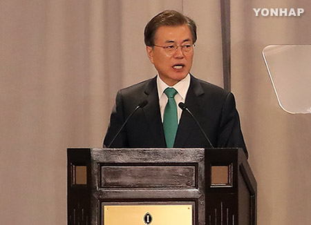 また「わが民族の運命はわれわれ自らが決めるべき。制裁と圧力は北朝鮮を正しい選択と対話の場に引き出すための手段だ。(北朝鮮に対し)圧倒的な力の優位を確保する」と訴えた。