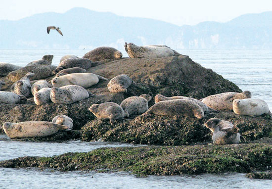There is also a smaller population of 300 grey spotted seals living in waters off Baekryeong Island located far north of the west coast of South Korea.