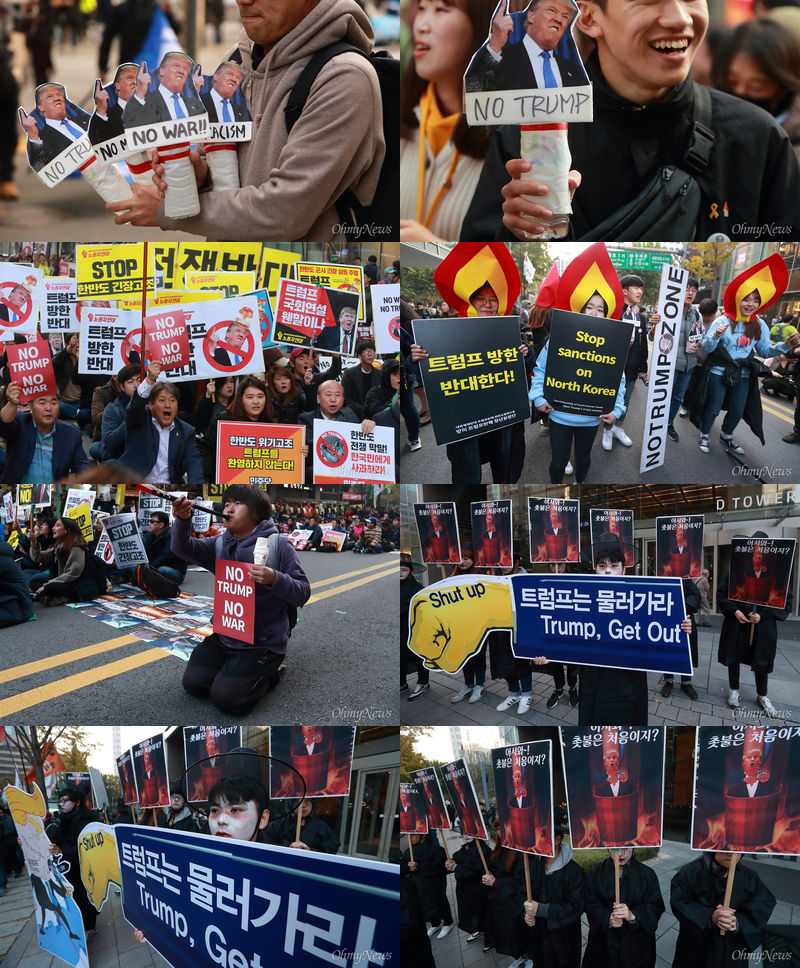> ソウルと大田、大邱、釜山、光州、蔚山、江原、全北、慶南など9つの地域でトランプ大統領訪韓反対汎国民大会も行われた。