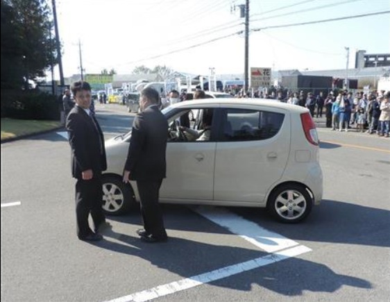 軽自動車には中年男性2人が乗車し、警官が職務質問したが、なかなか立ち去ろうとしなかった。5分後に、ようやく立ち去ろうと車を動かしたが、運転手の男性が窓を開けて、「安倍政権に抗議する。日米同盟…」と大声で吐き捨てた。