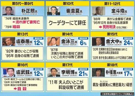 古い政権より新しい政権の方が良い世を作るという考え方から前政権は代々吊るし上げを食うというあの国独特の習慣が脈々と続くのではないか?文ちゃんの時代が終わるとき、韓国は悲惨なことになってるだろうな♪ふふふふふふふふふふふふ