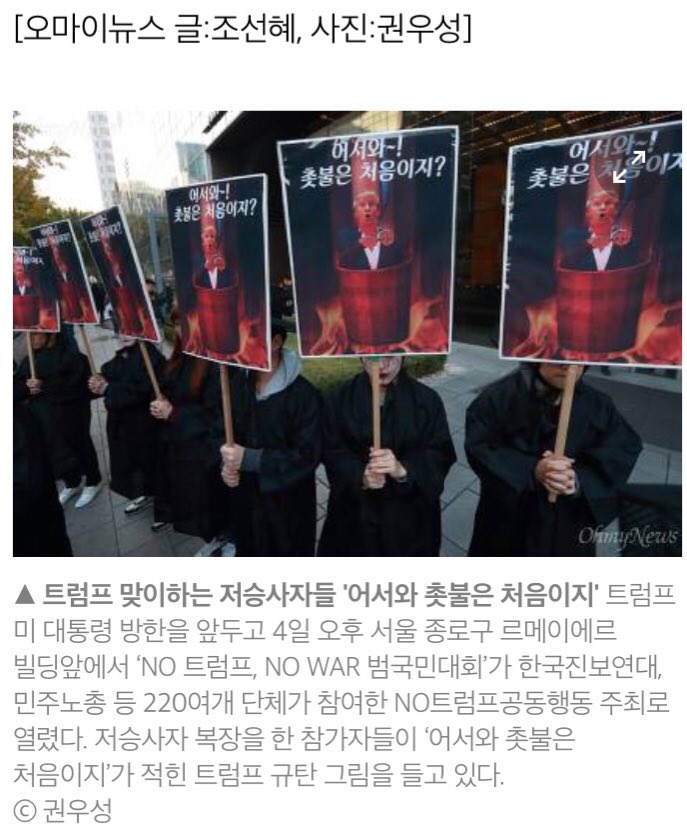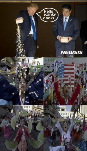 トランプ歓迎派と反対派の朝鮮ニュースやってたぞ