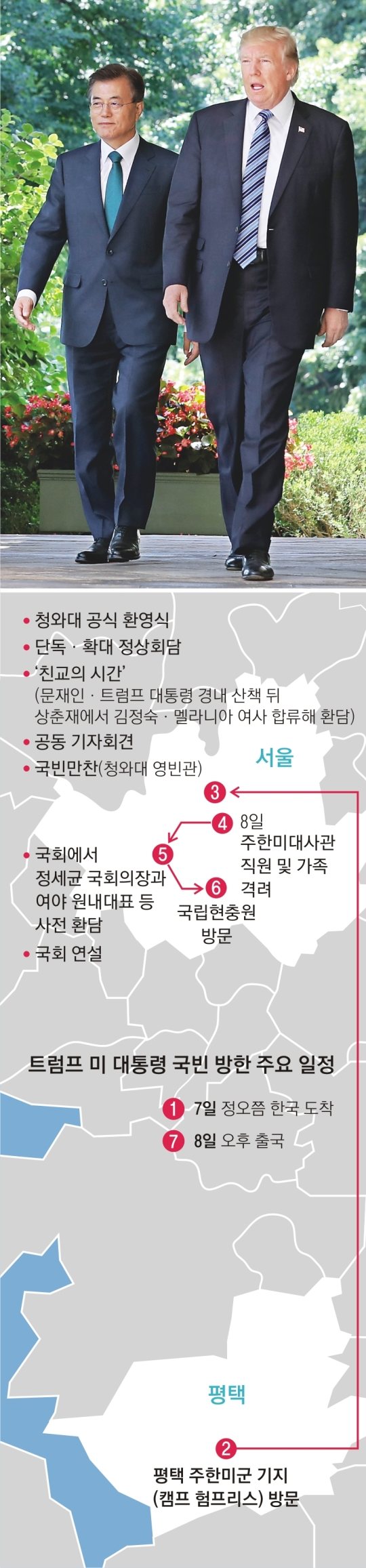 7日午後には、大統領府でトランプ大統領内外の訪韓を歓迎する公式歓迎式が開かれる。続いて単独・拡大首脳会談と共同記者会見が開催される。