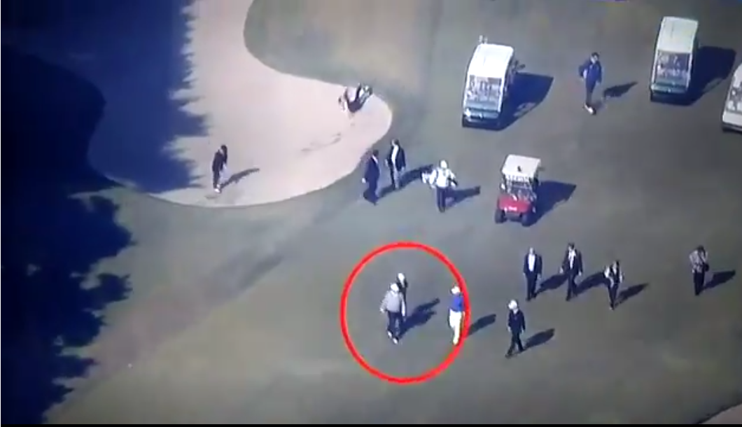 トランプ大統領とゴルフ中の安倍首相 バンカー脱出失敗→転ぶ