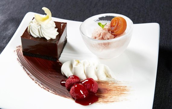 4쓸데없는 정보를 전달하는 한국인.2017/11/07(Tue) 13:25:52ID:k5NDEwODM(3/6)NG報告후식.산딸기 바닐라 소스를 곁들인 트리플 초콜릿 케이크와 감을 올린 수정과 그라니타.>>11>>200