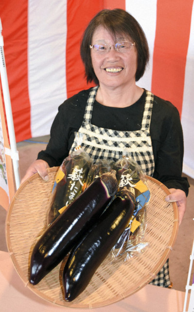昭和初期から長門市の田屋地区で「田屋ナス」として作られており、2003年から両市で本格栽培と出荷が始まった。普通のナスよりアクが少なく、加熱すると甘くとろりとした食感になるのが特徴で、13年に味や品質が優れた県の「やまぐちブランド」の農作物1号に認定された。今年は両市で10人が計54アールで栽培しており、県内を中心に3万2000本を出荷し、1000万円を販売目標にしている。