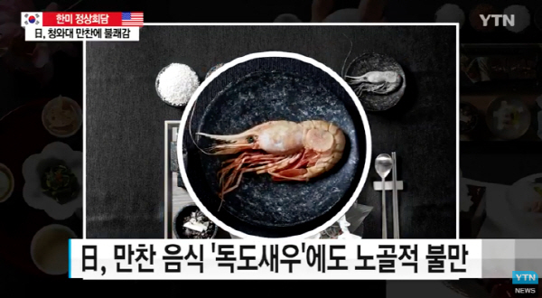 그러나 일본 언론은 실제로 독도새우를 사용한 것에 노골적으로 불반을 표했다는 후문이다.