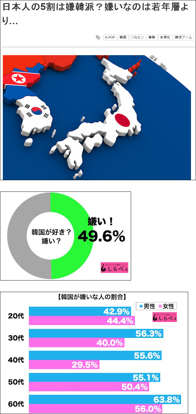 未だに韓国に対して比較的好意を持っているのは40代の女性くらいのものということだ。韓国人に直接質問したいことが3つあります。俯瞰的な感覚で回答いただけるとありがたいです。
