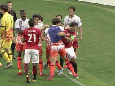 親善サッカーで韓国人が相手のエースをレッドカード級ファウルで粉砕
