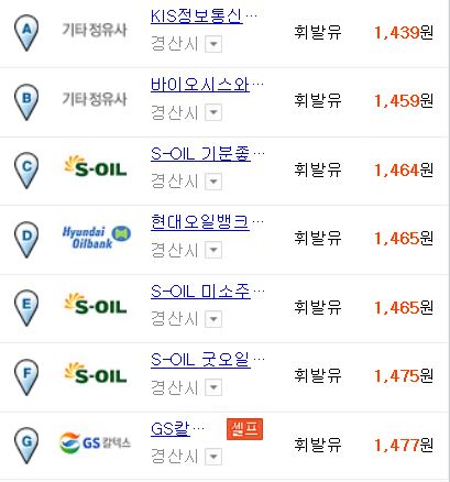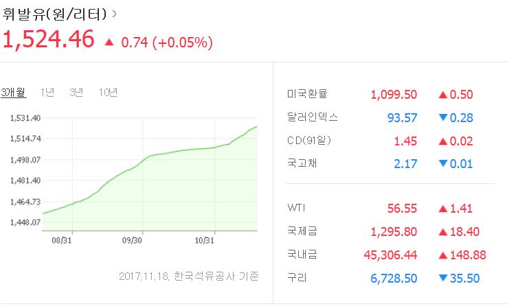 ガソリン価格が1455ウォンでガソリン価格は549ウォンだが、