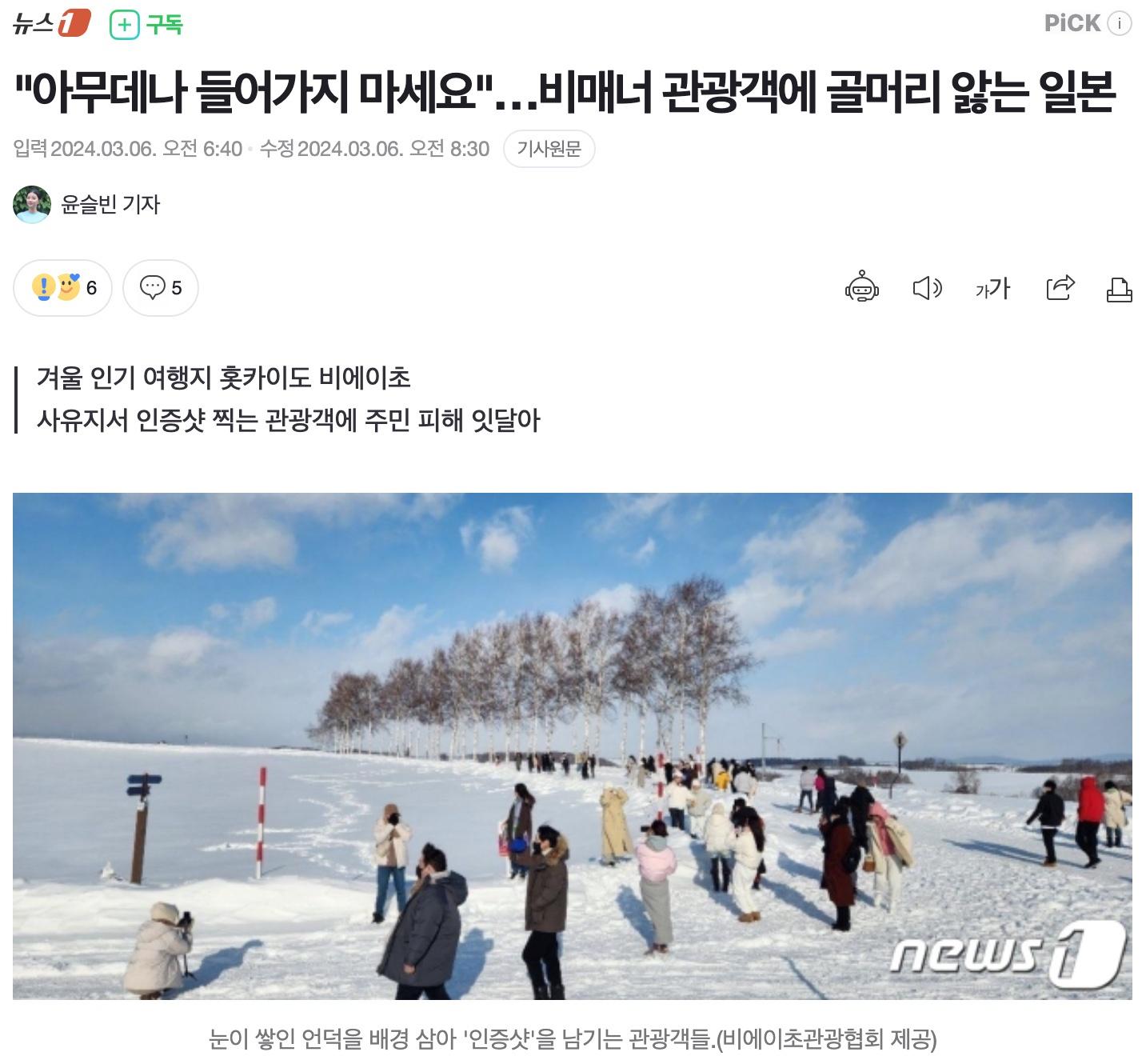 「道路で写真撮影しないでください」。昨年、韓国人が最も多く訪れた、日本の代表的な旅行先である北海道のある地域で、韓国人観光客の非マナーが問題になっている。
