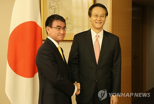 【東京聯合ニュース】韓国の李洙勲(イ・スフン)新駐日大使は14日、東京で河野太郎外相と会談し、両国首脳の「シャトル外交」の復活に向けて努力することで一致した。
