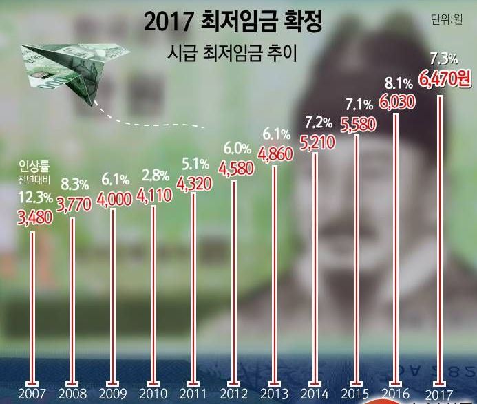 最低時給法定労働時間、月177時間x12として受け取る金が年俸1800万ウォンになる>>287 最低賃金労働者はパートタイムアルバイト仕事をする人が受ける年収だ
