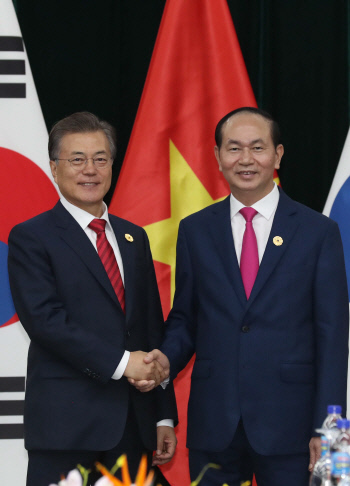 11日午前。文大統領はベトナム・ダナンでチャン・ダイ・クアン国家主席と首脳会談を行った。首脳会談で文大統領はベトナム戦に関連した過去を言及しなかった。ただ、交流・協力の拡大に焦点を合わせた。 文大統領は祝辞で「韓国はベトナムに『心の負債』があります」と述べた。また、「ところが、もうベトナムと韓国は互いに最も重要な経済パートナーであり、友人になりました」と述べた。