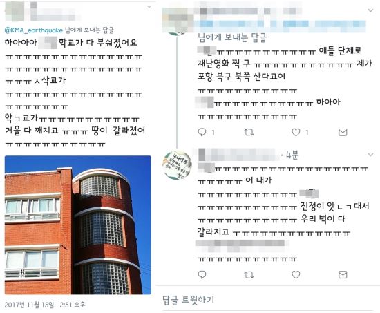 벽이 갈라진 포항의 학교
