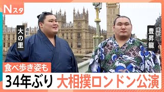 34年ぶり大相撲ロンドン公演、横綱・豊昇龍&大の里が露店のホットドッグ食べ歩き