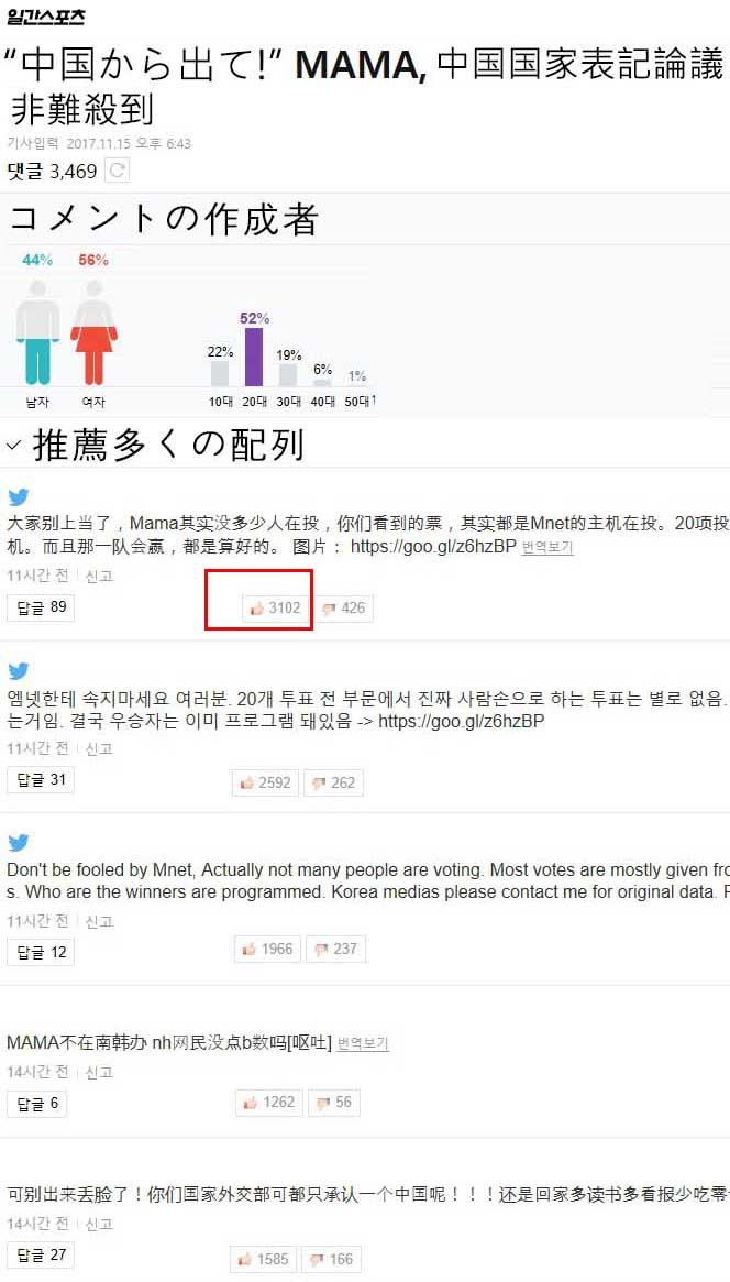 (( 이 사태를 보도한, 한국 인터넷 댓글 공간도, '중국인'이 댓글 작성. 추천수 3000 명. 이상 ))