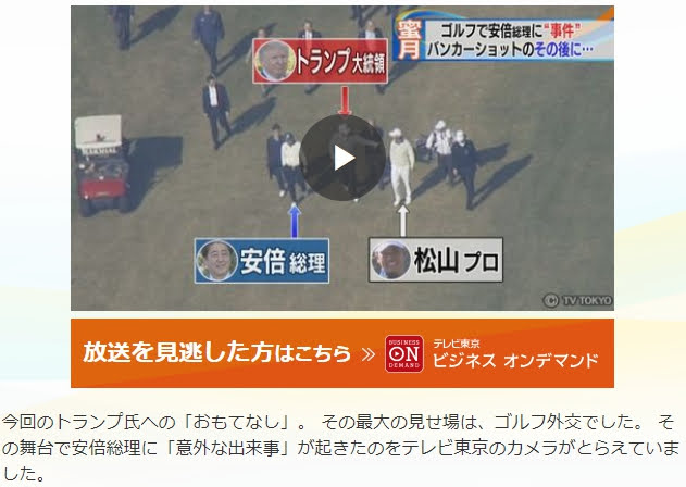 今回のトランプ氏への「おもてなし」。 その最大の見せ場は、ゴルフ外交でした。 その舞台で安倍総理に「意外な出来事」が起きたのをテレビ東京のカメラがとらえていました。