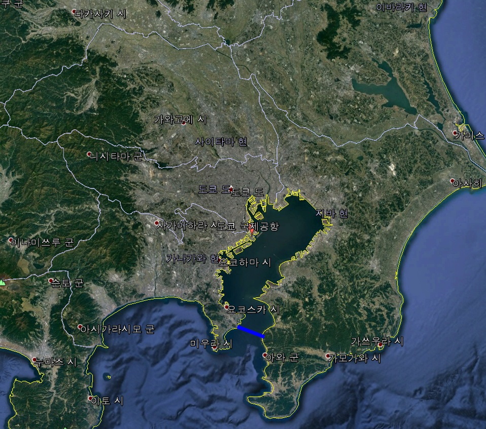 横須賀の米軍基地が内側にあるから無理だね。