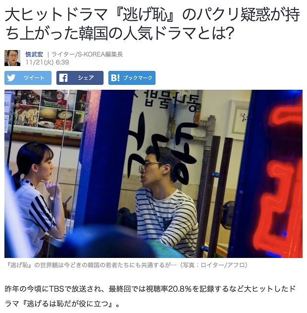 日本のドラマを盗む韓国人作家
