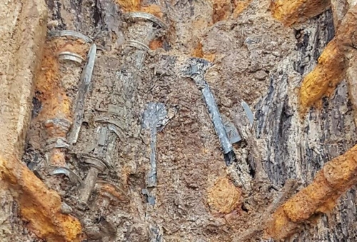 또 무덤 바닥에서는 판상철부(板狀鐵斧·판 모양 쇠도끼) 26점도 드러났는데, 추가 조사를 통해 더 많이 발견될 것으로 보인다.>>2
