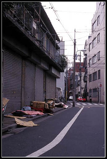 日本の東京と名古屋のホームレス