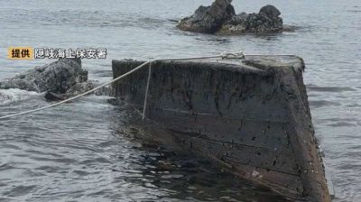 同海保によると、木造船が26日午前8時半ごろ、海岸から30~50メートル沖合を漂流しているのを近所の住民が発見。その後、海岸へ打ち上げられた。