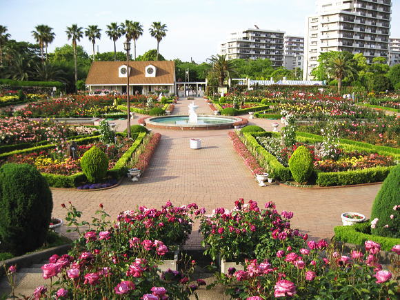 園内は約12,600平方メートルの敷地内には800種、7,500株のバラが噴水を中心に整然と咲き誇り、