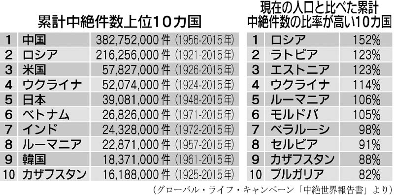 昔は日本も沢山の中絶をしていたようで、1948-2015の総数は多いのかもしれないですね。