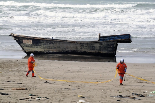 船体は現在、砂浜に打ち上げられた状態。同海保で遺体の状況などを調べている。