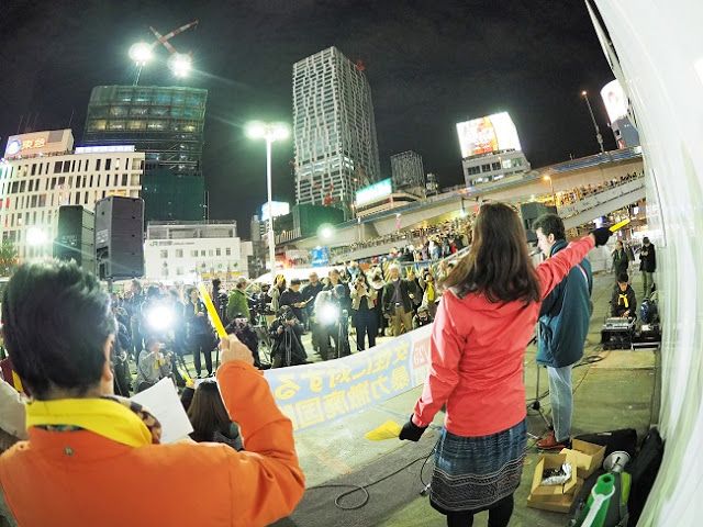この日、ろうそく集会には該当団体だけでなく、良心的な日本市民も参加した。そのように集まった300人はろうそく(ろうそくを象徴する蛍光棒)を手にして慰安婦問題の真の解決と女性に対する暴力のない世界のために祈った。参加者は渋谷駅前から陸橋をわたって道の向かい側まで立ち並んで週末夕方に繁華街を通り過ぎる日本市民に慰安婦問題を解決すべき理由を説明した。