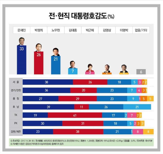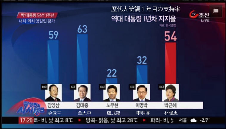 「功績が多い」の最多は朴正煕氏で、「過ちが多い」の最多(64%)は李明博氏だった。>>3