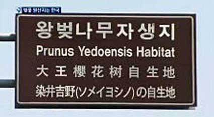 韓国人は王桜(왕벚나무)をソメイヨシノ(Somei- Yoshino)と同一品種と主張している。