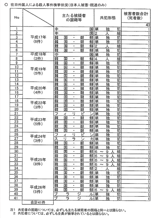 日本の在日朝鮮・韓国人の殺人事件件数はダントツです(画像)。