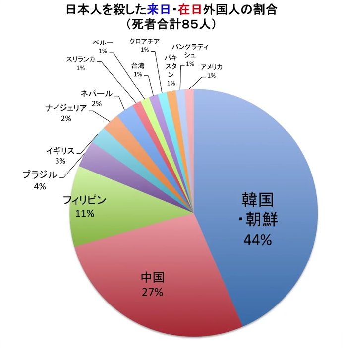 あと動画で紹介されてる「日本人をコロした来日・在日外国人の割合」貼っときます。