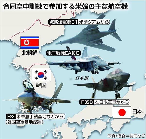 訓練は韓国とその上空で行われているが、米軍機の多くは日本やグアムから飛来する。F35Bなどは在日米軍基地から出動して韓国上空に迅速に展開後、そのまま基地に戻る。対北空軍力が韓国だけでなく、日米に控えていることを北朝鮮側に強く誇示する。