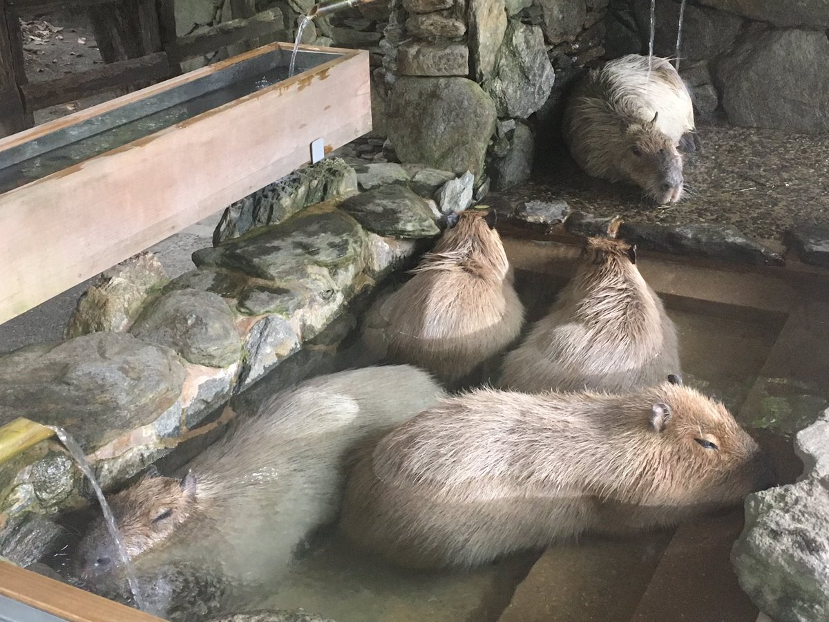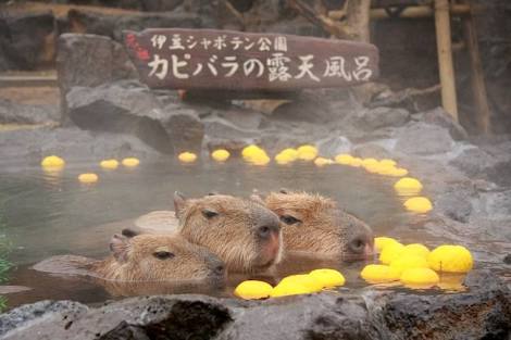 日本では、サルやカピパラも温泉を楽しみます。どこかの国でカピバラだったか?食用大ネズミを飼育してるらしいね