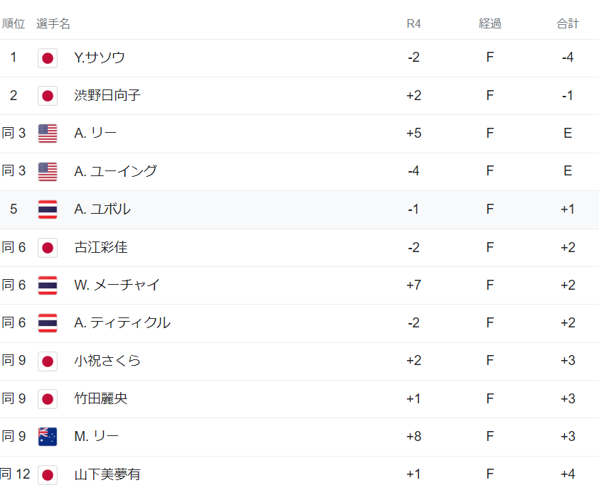 一方、日本人女子プロは、2位、4位、7位と3人がランクイン。